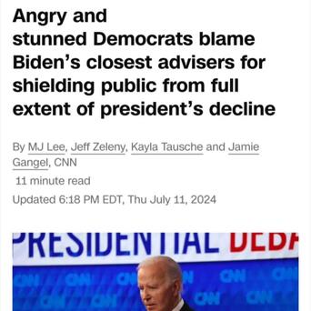 在特朗普遇刺后,美国全国广播公司NBC报道,拜登竞选团队已宣布,暂停所有拜登接下来的外出活动,这当然可以被解释为安全需要;但之后还有一个重要信息——拜登团队宣布,将尽快撤下所有电视竞选广告,显然这不是安全问题,这是打算退选。实际上本次美国总统第一次电视辩论后,美国大媒体已经纷纷发声,要拜登退选。包括美国有线电视新闻网CNN、《华盛顿邮报》《华尔街日报》等,这些都是民主党背后财阀控制的大媒体。究其原因,表面上是实在太不像话了,拜登身体和精神状态,连未来几个月总统职权都胜任不了,还怎么继续干4年?当然实质上,是因为民主党内大部分人也反对拜登继续,不仅选不赢,继续硬选只会打击民主党已经甚为危险的声望,未来2026年中期选举,民主党在国会的席位也会因拜登这次荒谬的参选,而大受冲击。