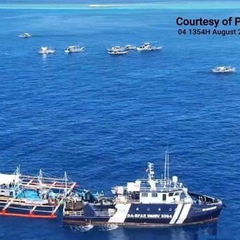 【菲公务船在仙宾礁免费发油,大批渔船蜂拥而至,中国海警现场管控】8月4日,中国海警发布谈话称,菲律宾多艘公务船和渔船从前一天起在仙宾礁聚集活动,中国海警全程进行了依法跟监、有效管控。