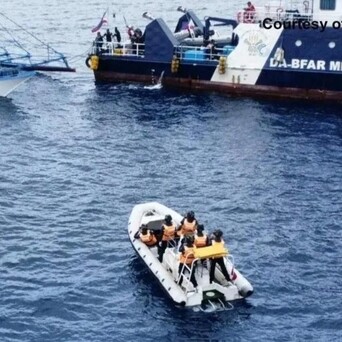 同时,非法滞留在仙宾礁长达100多天的菲海警9701舰也与菲方船只进行了协同,出动了舰载充气艇运送燃料,还与中国海警的执法艇在海上展开了对峙。显然,他们就是在用这种方式,试图非法侵占仙宾礁的潟湖和传统渔场,以此宣称中国的仙宾礁其实是他们的。